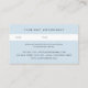 Las tarjetas de moda para su salón, spa o servicios de belleza incluyen su nombre o nombre de compañía acentuado por dos ilustraciones geodede agate slice acuarcolor en azul eéreal pálido del océano. Agregue la directiva de cancelación, el encabezado del personalizado y la información de contacto al reverso. Incluye espacio para escribir en la siguiente fecha y hora de cita del cliente.