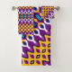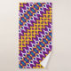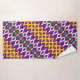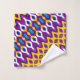 Un patrón sin fisuras con formas simples, simétricas en color morado, amarillo y azul