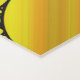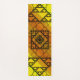 Tres estilos de fractales dibujados a mano, entre ellos los triángulos de Sierpinski, las juntas de Apolonia y un diseño cuadrado de temática similar, componen las capas de esta mandala geométrica, sobre un gradiente amarillo brillante y naranja.