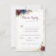 Las cartas geométricas y modernas de boda son perfectas para un boda rústico. El diseño se compone de acuarela de color púrpura, marina, rubor, burdeos, flores de la marina, hojas verdes y doradas y un marco geométrico elegante.