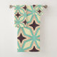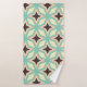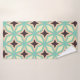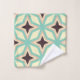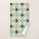 Geometric pattern with alternating dark star shapes surrounded by layered hexagonal outlines in teal, cream, and beige, creating a symmetrical, retro vibe.