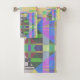 Patrón de formas geométricas coloridas, obras de arte hechas por personalizados en tonos prominentes de amarillo, verde, azul, violeta y con matices adicionales de burdeos, plata, gris, rosa y oro. Elegante diseño de arte digital a la moda.