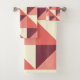 Toalla de baño de patrón geométrico de triángulo rosa púrpura rosa diseñada por Nisha Prabhu. Este juego de toallas de baño tiene un patrón geométrico cautivador en tonos melocotón, rosa y violeta, formando un diseño triangular elegante y moderno. Este conjunto es especial porque combina la funcionalidad con el estilo artístico, transformando un baño normal esencial en una elegante pieza de declaración. Los colores vivos y la decoración contemporánea le dan un toque de sofisticación a la decoración del cuarto de baño, creando un ambiente de spa en su propia casa. Disfrute del lujo de estas toallas únicas y atractivas, y eleve su rutina diaria con un toque de belleza y elegancia.