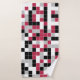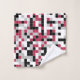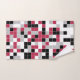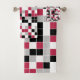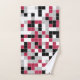 Este colorido conjunto de toallas de baño presenta un patrón geométrico multicolor en magenta, negro, gris y blanco a la moda con una rejilla blanca. Los cuadrados están coloreados en un patrón aleatorio y puede editar los colores de la herramienta Diseño para que coincidan con el esquema de color del baño.