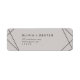 Estas etiquetas geométricas y modernas de retorno de color gris son perfectas para un boda sencillo. El diseño clásico presenta formas geométricas bohemias de diamante y triángulo y una tipografía rústica de boho con un toque industrial moderno de moda. Estas etiquetas se pueden utilizar para un boda, una ducha de novia, un evento especial o cualquier vez que necesite una etiqueta de dirección personal.