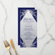 Un menú con clase, con un diseño geométrico plateado sobre un fondo azul marino profundo, con un toque de purpurina plateado. Puede agregar sus detalles haciendo clic en el menú personalizar. Forma parte de una elegante suite boda que incluye una invitación, sobre, tarjetas de visita, servilletas y muchos otros artículos.