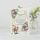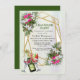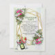 Purpurina de oro geométrico sobre papel texturado con lirios blancos, helechos y flores rosadas rojizas de Amaryllis para un boda de primavera o verano para que el Groom sea