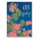 Una tarjeta de cumpleaños número 65, con geranios color salmón sobre fondo azul profundo y elegantes letras blancas. Desde un diseño impreso en pantalla de Judy Adamson, puedes personalizar el mensaje interno si lo deseas.