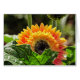 El florecimiento de una impresionante Gerbera daisy se asoma a una hoja. Tenga en cuenta que esta tarjeta puede ser personalizada con su propia inscripción personal.