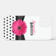Moda y polka blanco y negro de moda punto caliente gerbera daisy rosa caliente (margarita gerber) flor y cinta iPhone 6 Barely There () funda. Añade algunos puntos de polka retro y estilo floral giratorio a tu funda de iPhone 6. Personalízalo con tu nombre y apellido.