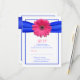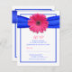 Gerbera rosa con tarjeta RSVP de cinta azul