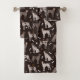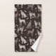 German Shorthaired Pointer dogs with liver and white ticked coats. Scattered dog bones and paw prints dog pattern.