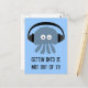 Postal azul con una bonita medusa azul personalizado con auriculares y las palabras "ponte en ella, ¡no te vas!". El color del texto y del fondo es personalizable - muchas fuentes y colores para elegir. Por favor, visite mi tienda Sober Princess por regalos únicos y divertidos para la gente que se recupera del alcohol y la adicción a las drogas (¡y sus perros!) - y regalos con mensajes espirituales/inspiradores. Todos los ilustraciones creados por un alcohólico en recuperación.