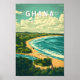 Diseño de viaje vectorial retro en Ghana. Ghana ofrece un rico patrimonio cultural, monumentos históricos y una diversidad de belleza natural, desde las bulliciosas calles de Accra hasta las pasarelas con dosel de Kakum y los fuertes históricos de la Costa del Cabo.