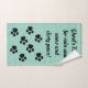 Cute picture of dog paw marks, is featured on this towel for dogs. With message, "Ghost's Towel for rain and snow and dirty paws"! Makes a useful and fun gift for your favorite pooch! Material: front is a polyester blend, back is 100% cotton, 16 by 28 inches and is machine washable, tumble dry on low. You can change the text also.
