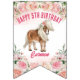 Giddy de cumpleaños de poni rosado con pancarta de