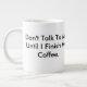 Esto es una taza del café con leche grande, con las palabras-don't habla conmigo hasta que acabe mi café impreso en él.