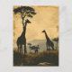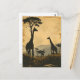 "Viaje en el tiempo con nuestra tarjeta postal de jirafas de época, donde los elegantes cuellos de estas majestuosas criaturas pintan una imagen de belleza indomable. Esta postal sepia capta la esencia de una época pasada, ofreciendo un vistazo a la salvaje elegancia de las jirafas. Que el encanto del arte vintage adorne tu espacio o lo envíe como una nota sentida, celebrando el encanto único y atemporal de estos animales icónicos".