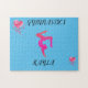 Rompecabezas de gimnasia con gimnasta y corazones. ¡Nombre personalizado!