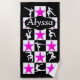 Esta emocionante gimnasta se tambaleará, volteará, saltará y volará para esta impresionante toalla de playa personalizada Gymnastics de color negro y rosa de www.zazzle.com/mysportsstar. Este hermoso Chica de Gimnasia va por el oro y está listo para convertirse en un Campeón de Gimnasia. Esta atractiva toalla de playa Gymnastics es el regalo perfecto para cumpleaños, vacaciones o cualquier ocasión. Muestra tu increíble gimnasta tu amor y apoyo con la motivacional toalla de playa de gimnasia personalizada que le encantará usar durante todo el año.
