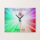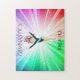 Bellas luces coloreadas rompecabezas con gimnasta en morado. Nombre personalizado.