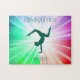 Bellas luces coloreadas rompecabezas con gimnasta en morado. Nombre personalizado.