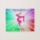 Bellas luces coloreadas rompecabezas con gimnasta. Nombre personalizado.