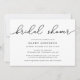 La invitación a la ducha de novias, simple y elegante, para las novias modernas, incluye la "ducha de novia" en la parte superior de la tipografía de escritura negra. Personaliza con tus detalles de ducha de novia debajo. Un moderno diseño de ducha de novias en blanco y negro de moda para celebraciones elegantes.