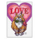 Desfile Animal Romántico Gato Corazón y Amor Regalos, Tarjetas y Accesorios traídos a usted por ITD Animal Parade presenta nuestra divertida obra de un naranja y gato blanco sosteniendo en su boca a un rosa bonito con los corazones púrpura, rojo y rosado estratificados digitalmente por el talentoso artista infantil Traci Van Wagoner. Este gatito dulce de diseño amoroso es un regalo perfecto para el El día de San Valentín, su cumpleaños, por proponer matrimonio de una manera divertida y original, o sólo para decir, te amo. ¡Vaya!