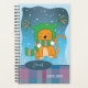 Un planificador azul, naranja y morado con un gato jengibre personalizado con un gorra verde y una bufanda , parado en la nieve en un frío día de invierno. Personalízalo con un nombre y el año . Ideal para la escuela, la oficina o el hogar. © ArianeC Ilustraciones-Todos los derechos reservados
