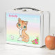 Cute ginger gatito gatito gato, flores de peonía rosada, un blanco y afortunado ratón y estrella en tonos pastel Lunch Box. El nombre se puede personalizar.