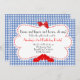 Un asistente perfecto y simple de la invitación al tema de Oz. Un gingham blanco y azul campestre con zapatillas de rubí rojas y un lindo arco rojo. Perfecto para cualquier fiesta OZ.