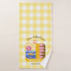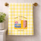 Gingham sardines custom design featuring a retro sardine tin illustration on a yellow gingham pattern, personalized with family name and year, blending vintage fish label style with coastal aesthetic, picnic vibe, mediterranean feel, nautical elements, and playful retro charm for a bold, eye-catching personalized name design.