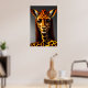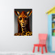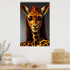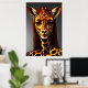 Retrato de una jirafa de cabello largo, piel de jirafa y orejas. Este es un arte generado por IA.