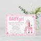 Girafa rosa Bebé Chica en vieira 5x7 Invitación
