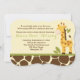 Esta adorable jirafa presenta un diseño muy moderno a ambos lados y un amplio espacio para escribir. Cuando tengas una elegante ducha de bebé temática en la jungla, por favor, considera nuestra invitación temática a la jirafa de personalizable completo.
