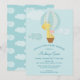 Una adorable invitación a una ducha de bebé azul con una jirafa en un globo de aire caliente con nubes lindas. Esta invitación a una ducha dulce para bebés es una manera muy elegante de dar la bienvenida a sus invitados a una ducha de bebés.