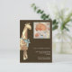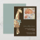 Anuncio de nacimiento de "jirafa" de fotos marrones y azules. Personalice esta bonita y elegante plantilla de postal con la foto de su bebé y los detalles para un anuncio de nacimiento único.
