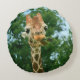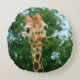 Giraffe Eating Weeds es una fotografía captada al aire libre en el Zoológico de Quad Cities (Zoológico Niabi en Coal Valley, IL). Se para alto y orgulloso contra el fondo de los árboles y los cielos azules. La lengua negra se desliza hacia un lado. La jirafa está a ambos lados de la almohada.