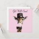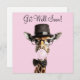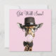 Girafa con gafas, un sombrero de punta y chupando un chicle rosado. Recibir muy pronto saludo