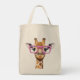 Giraffe con una bolsa de tocador de lentes rosados