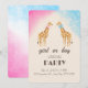 ¡Felicitaciones por tu embarazo! Presentamos la invitación a la Revelación de Género, la manera perfecta de invitar a sus invitados a celebrar con ustedes en esta emocionante ocasión! Esta invitación tiene un impresionante diseño de humo rosa y azul, junto con dos adorables dibujos de color de agua de jirafa, cada uno adornado con un arco rosa o azul, creando un ambiente divertido y divertido a la vez simple.Si planeas un fiesta con temática de safari, esta invitación será adecuada para tu idea. La escritura "Chica" o "niño" se exhibe de manera prominente en letras negrita y marrón, lo que crea una clara indicación de la revelación de género. La invitación es totalmente personalizable con la información de su fiesta, incluyendo fecha, hora, ubicación y detalles de RSVP, lo que le permite hacerlo personal para su celebración. ¡Me gustaría que tenga la mejor experiencia de embarazo!