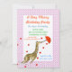 Cute Flying Giraffe Red Umbrella Happy Birday Card con tipografía de estilo retro y adorables corazones rojos