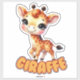 Este gigantesco pegatina de jirafa es una adición encantadora y caprichosa a cualquier habitación infantil o infantil, que le aporta un ambiente lúdico y aventurero al espacio. El diseño incluye una adorable jirafa de bebés en una agradable posición con una sonrisa alegre y cordial. Sus grandes y brillantes ojos negros están enmarcados por largos y delicados azotes que realzan su dulce y adorable expresión. Los toques de color rosado de las mejillas le dan un toque encantador y acogedor. El abrigo con estampado de la jirafa está muy bien decorado, con ricos tonos dorados y amarillos adornados con audaces manchas de color marrón naranja que reflejan su aspecto icónico. Su cuello delgado, sus orejas perky y sus pequeños ossiconos (estructuras tipo cuerno) coronados con túmulos de piel marrón oscura le dan un carácter realista pero caprichoso. Un riachuelo de pelo castaño rojizo añade personalidad adicional al diseño, mientras que sus cascos delicados y su pequeña cola de tejas completan su aspecto encantador. La palabra "GIRAFFE" se muestra en letras en negrita y burbujeantes en la parte inferior del diseño, escritas en una vibrante sombra naranja delineada en rojo profundo. El divertido tipo de letra complementa perfectamente la alegre decoración de la jirafa, lo que la convierte en un lugar ideal para los niños. El pegatina está rodeado de un blanco inmaculado, por lo que se resalta vívidamente sobre cualquier fondo, ya sea en las paredes, en los muebles o en cualquier otra decoración. Este pegatina es perfecto para crear un vivero con temática de safari o jungla, celebrando la belleza de la vida silvestre y fomentando una sensación de asombro e imaginación. Se asocia maravillosamente con otros pegatinas de temática animal, como elefantes, tigres y cebras, para diseñar un ambiente cohesivo y atractivo.