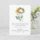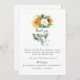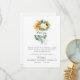 Tarjeta de agradecimiento por funeral y duelo. Ramo floral de girasol y peonía. Mensaje.