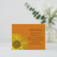 ¡Propuso y usted aceptó! Ahora estás comprometido a casarte y es hora de decírselo al mundo. Anuncie sus noticias con el bonito Girasol Amarillo en la Invitación de compromiso Naranja. Esta elegante invitación personalizado florida de verano o otoño incluye una flor de girasol amarillo en la esquina con un fondo naranja.