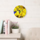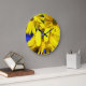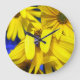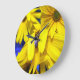 los pétalos amarillos del girasol acarician esta abeja teñida azul en este reloj de pared único del azul y del amarillo