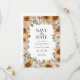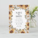 Sunflower Save The Date. Agrega un toque de sol a tu boda con estas hermosas flores de girasol amarillas pintadas a mano con acuarela, margaritas blancas y hojas de color verde salvia y terracota. Perfectas para una romántica boda rústica de otoño o una boda de verano en un jardín al aire libre, estos impresionantes anuncios de boho chic para guardar la fecha de tu boda sentarán el tono para tu día especial. Encuentra productos coordinados en las Invitaciones de Boda de Girasoles de Acuarela Rústica.