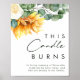 Esta señal de girasol de país audaz | esta vela arde es perfecta para su boda de verano boho clásica simple en el patio trasero del granero. El diseño presenta un ramo de girasoles vintage en acuarela amarillos dorados y rústicos naranjas, elegantes follajes de eucalipto verde salvia modernos, y una rosa marfil blanca. El diseño es ideal para una boda casual al aire libre con follaje otoñal minimalista. Por favor, no dude en hacernos llegar sus preguntas con respecto al diseño del producto; ¡salud!