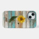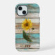 El iphone de este jardín rural y el funda Samsung cuentan con un girasol dorado contra la madera marrón y verde que hace mal tiempo. Este encantador diseño de boho presenta sus iniciales de monograma en marrón en la parte inferior. Escriba estos elementos en el cuadro Personalizar para reemplazar el marcador de posición.